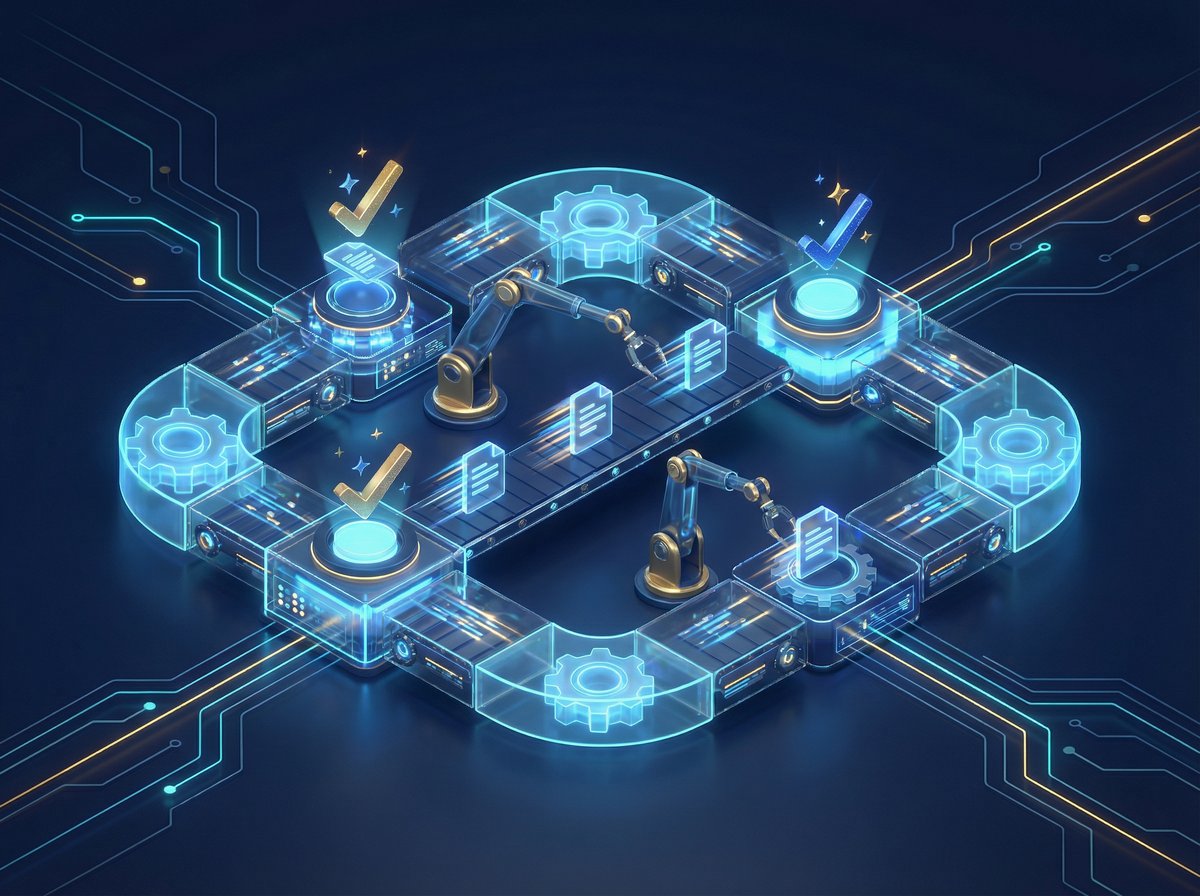 KI übernimmt zeitaufwändige manuelle Aufgaben: Rechnungsverarbeitung, Dokumentenklassifikation, Dateneingabe und Qualitätsprüfungen. Was früher Stunden dauerte, dauert jetzt Sekunden — mit höherer Genauigkeit und vollständiger Nachvollziehbarkeit.